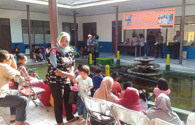 Tampak anak-anak sangat antusias mengikuti kegiatan social tersebut, didampingi para orang tuanya masing-masing, mereka di antri untuk tiap-tiap 10 anak.