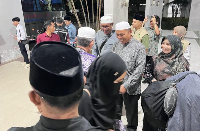 BATAM – Bupati Kabupaten Indragiri Hilir (Inhil) H Herman didampingi Ketua TP-PKK Inhil, Hj Katerina Susanti menyambut langsung kedatangan jemaah haji yang saat ini telah tiba di Asrama Haji Embarkasi Batam pada Kamis (19/6/2025) dini hari.