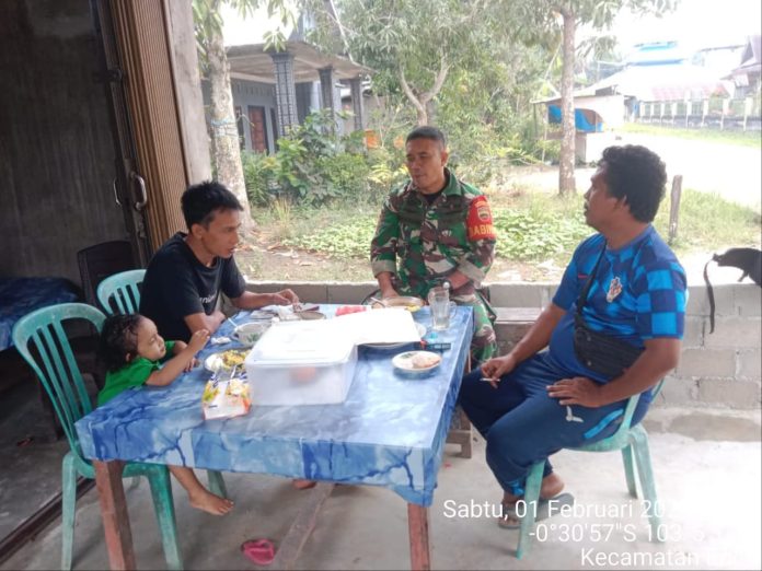 Enok, — Dalam upaya mempererat hubungan antara TNI dan masyarakat, Serda Niko Arisandi, Babinsa Pengalihan Koramil 02/TM, melaksanakan kegiatan komunikasi sosial (Komsos) bersama warga binaan di Desa Pengalihan, Kecamatan Enok, Kabupaten Indragiri Hilir. Sabtu (01/02/2025).