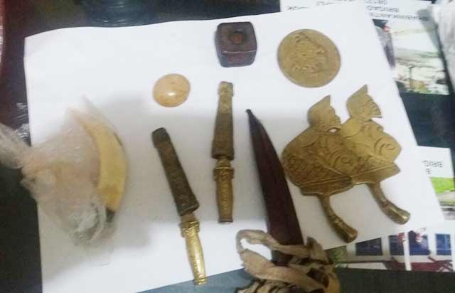 Dari tangan pelaku berhasil diamankan 2 bilah pisau kuningan, 1 buah, Stambul (Quran Kecil), semar kuningan 2 buah, 1 buah koin bengol, 1 buah batu akik yang merupakan milik korban.