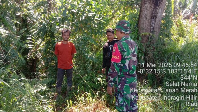 Tanah Merah, — Dalam upaya mengantisipasi kebakaran hutan dan lahan (karhutla), Babinsa Desa Sungai Nyiur Koramil 02/TM, Serka Mardia, melaksanakan patroli di wilayah Desa Sungai Nyiur, Kecamatan Tanah Merah, Kabupaten Indragiri Hilir (Inhil), Minggu (11/5/2025).