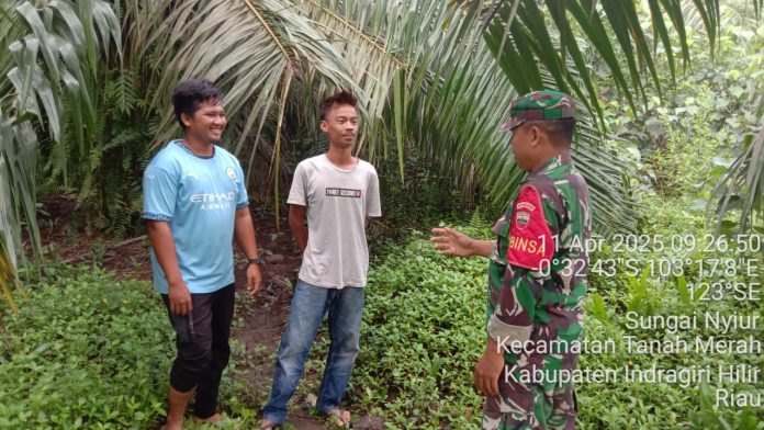 Tanah Merah, – Babinsa Desa Sungai Nyiur dari Koramil 02/Tanah Merah, Sertu Mardia, melaksanakan patroli rutin di wilayah Desa Sungai Nyiur, Kecamatan Tanah Merah, Kabupaten Indragiri Hilir, pada Jumat (11/4/2025).