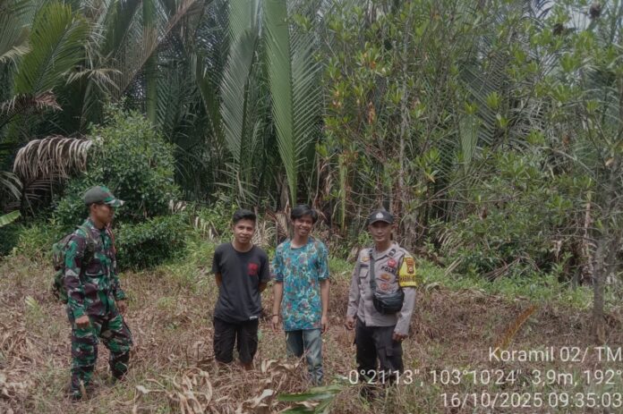 INHIL, – Babinsa Tekulai dari Koramil 02/Tanah Merah (TM), Kodim 0314/Indragiri Hilir (Inhil), Riau, Serda Salehen, bersama tim gabungan TNI, Polri, dan masyarakat setempat, melaksanakan kegiatan patroli tapal batas serta sosialisasi di wilayah Desa Tekulai, Kecamatan Tanah Merah, Kamis (16/10/2025).