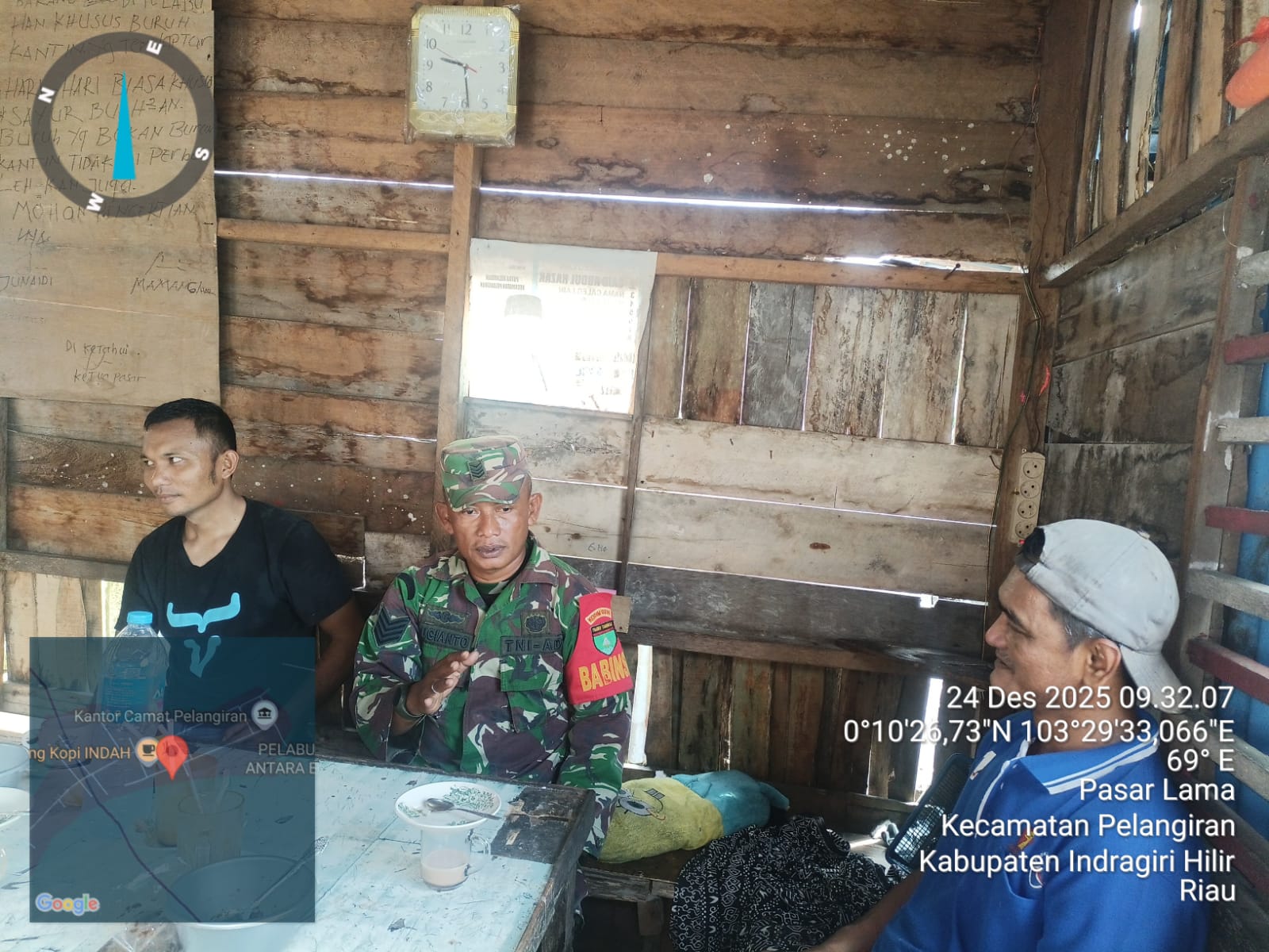 Inhil – Dalam rangka mempererat hubungan antara TNI dan masyarakat, Babinsa Koramil 02/Tanah Merah (TM), Kodim 0314/Inhil, Serda Niko Arisandi melaksanakan kegiatan komunikasi sosial (Komsos) dengan warga desa binaan di Desa Pengalihan. Kegiatan ini bertujuan untuk memupuk rasa kebersamaan dan mempererat tali silaturahmi antara Babinsa dengan masyarakat setempat. (03/5//2025).