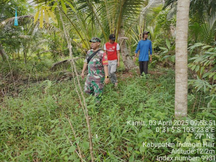 ENOK – Dalam rangka menjaga keamanan dan mencegah terjadinya kebakaran hutan dan lahan (karhutla), Babinsa Koramil 02/TM, Pelda Boy R Sitompul, bersama dengan personil gabungan dari TNI dan masyarakat, melaksanakan patroli di wilayah Parit Mesjid, Desa Simpang Tiga Daratan, Kecamatan Enok, Kabupaten Indragiri Hilir (Inhil). Kamis (03/4/2025).