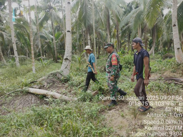 Dalam kegiatan patroli tersebut, Serma Boy didampingi oleh satu personil TNI dan tiga orang warga setempat. Patroli dilaksanakan di titik koordinat -0°25’58″S, 103°10’18″E dengan tujuan untuk memastikan tidak adanya aktivitas pembakaran lahan ilegal yang dapat mengancam lingkungan sekitar.