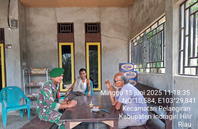 Indragiri Hilir, — Dalam upaya memperkuat ketahanan sosial dan menciptakan lingkungan yang aman dan kondusif, Babinsa Koramil 10/Pelangiran (Plg), Praka M. Ikhsan, melaksanakan kegiatan Komunikasi Sosial (Komsos) bersama warga Kelurahan Pelangiran, Kecamatan Pelangiran, Kabupaten Indragiri Hilir, pada Ahad (15/6/2025).