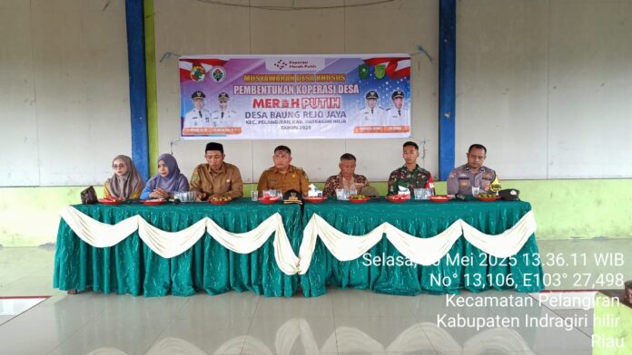 Indragiri Hilir, — Pemerintah Desa Baung Rejo Jaya, Kecamatan Pelangiran, Kabupaten Indragiri Hilir (Inhil) menyelenggarakan Musyawarah Desa Khusus (Musdesus) untuk Pembentukan Koperasi Merah Putih, Selasa (20/5/2025). Kegiatan ini merupakan tindak lanjut dari program pemerintah pusat dalam upaya meningkatkan perekonomian masyarakat desa melalui penguatan kelembagaan ekonomi berbasis komunitas.