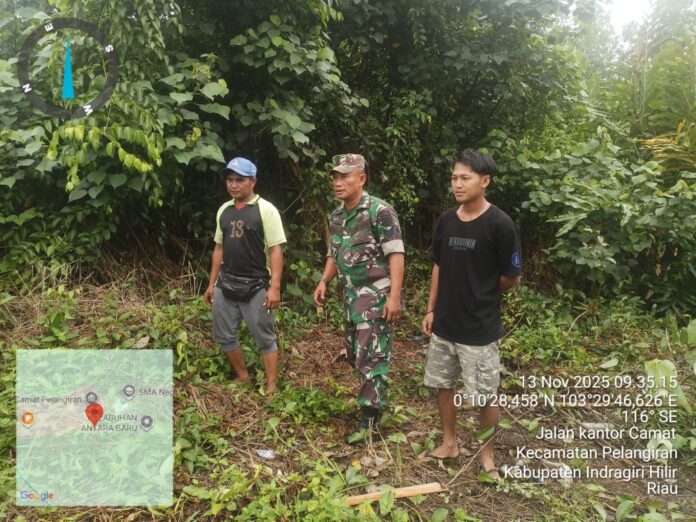 Indragiri Hilir, — Di tengah meningkatnya kewaspadaan terhadap potensi kebakaran hutan dan lahan (karhutla) di wilayah pesisir Riau, Babinsa Koramil 10/Pelangiran, Serma Sugianto, bersama warga melaksanakan patroli tapal batas di Kelurahan Pelangiran, Kecamatan Pelangiran, Kabupaten Indragiri Hilir (Inhil), Kamis (13/11/2025).