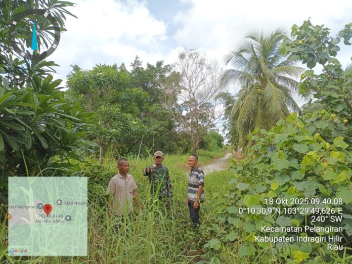Pelangiran, — Dalam rangka menjaga keamanan wilayah dan mencegah terjadinya kebakaran hutan dan lahan (Karhutla), Babinsa Serma Sugianto dari Koramil 10/Pelangiran melaksanakan patroli tapal batas di wilayah Kelurahan Pelangiran, Kecamatan Pelangiran, Kabupaten Indragiri Hilir, Provinsi Riau. Patroli ini dilaksanakan pada Sabtu pagi dengan titik koordinat 0°10’30,732″N dan 103°29’49,176″E. Sabtu (18/10/2025).