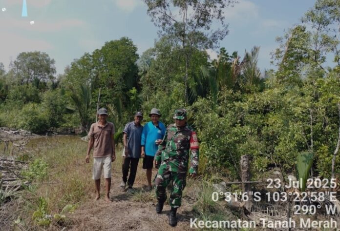 Tanah Merah, – Dalam upaya mengantisipasi dan mencegah terjadinya kebakaran hutan dan lahan (karhutla), Babinsa Desa Tanah Merah, Koramil 02/Tanah Merah Kodim 0314/Inhil, Serka P. Siregar, melaksanakan patroli terpadu di wilayah binaannya, Rabu (23/7/2025). Kegiatan patroli ini difokuskan di area rawan karhutla yang berada di sekitar titik koordinat -0°31’6″S, 103°22’58″E, yang termasuk wilayah Desa Tanah Merah, Kecamatan Tanah Merah, Kabupaten Indragiri Hilir (Inhil), Provinsi Riau.