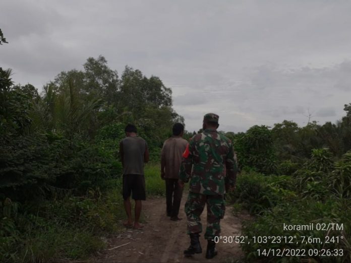 Tanah Merah – Mengantisipasi kebakaran lahan dan hutan (Karhutla), Babinsa Koramil 02/Tanah Merah Sertu P Siregar bersama masyarakat melaksanakan kegiatan patroli Karlahut di wilayah desa Tanah Merah, kecamatan Tanah Merah, kabupaten Indragiri Hilir (Inhil), Rabu (14/12/2022) pagi.