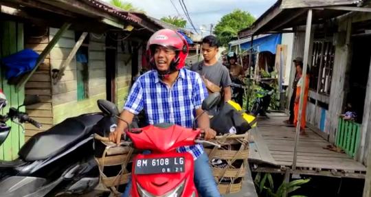 Dengan menggunakan sepeda motor yang dilengkapi dengan keranjang Ketua PD-IWO Inhil Muridi Susandi bersama pengurus menyusuri jalan untuk mengantarkan puluhan paket sembako ini ke rumah-rumah warga khususnya kaum dhuafa.