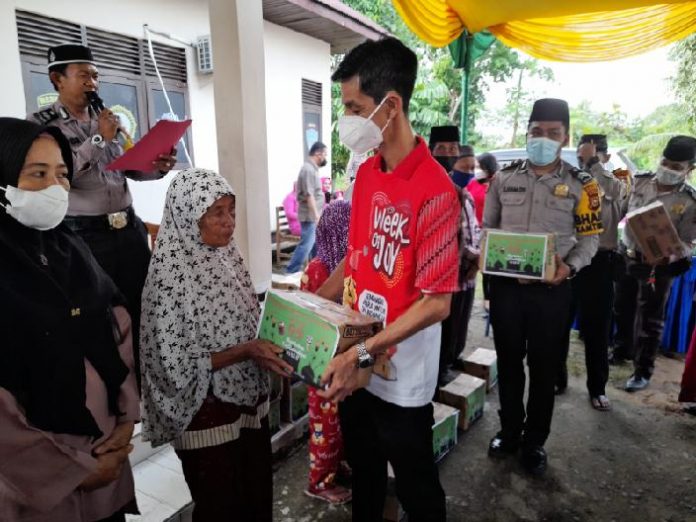 INHIL,- Sebanyak 100 paket sembako dibagikan Polsek Tembilahan Hulu kepada warga kurang mampu, bekerja sama dengan PT. Sinar Alima Tembilahan (Walls Ice Cream), Rabu (20/4/2022) di Mapolsek Tembilahan Hulu.