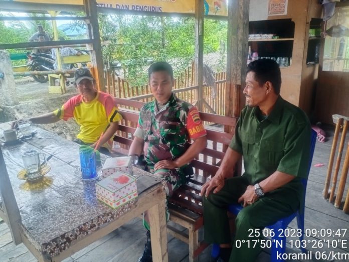Kegiatan komunikasi sosial Komsos yang dilakukan Praka Fiki Eka Putra secara Humanis, bertempat di desa Beringin Mulya, kecamatan Teluk Belengkong, kabupaten Indragiri Hilir (Inhil), Ahad (25/6/2023) pagi.