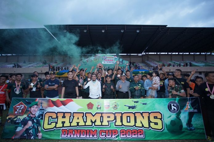 Pada kesempatan itu, Bupati HM. Wardan mengucapkan selamat kepada pemenang turnamen Dandim Cup 2022.