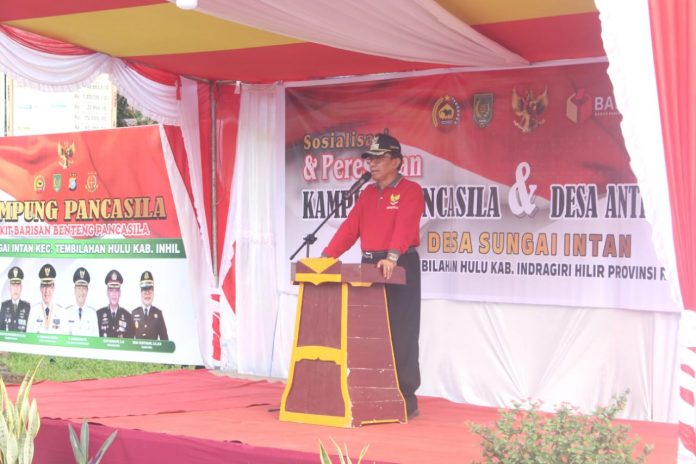 Mengawali sambutannya, Bupati H. Muhammad Wardan menyampaikan rasa bangga dan apresiasinya atas diresmikannya Desa Sungai Intan, Kecamatan Tembilahan Hulu sebagai salah satu Kampung Pancasila dan Mikroba Village sekaligus sebagai Desa anti politik uang di Kabupaten Inhil.