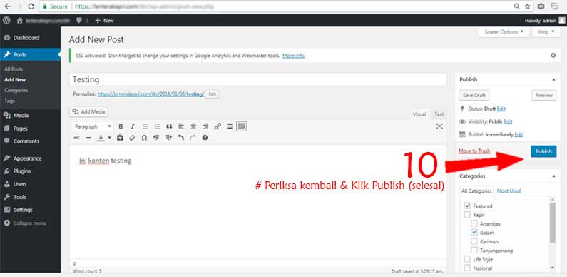 Setelah menulis atau membuat sebuah artikel kita ingin mempostingnya di website. Pada wordPress caranya sangat mudah, sehingga setelah di-publish (ditampilkan) tilisannya dapat dibaca atau dilihat oleh semua orang yang mengakses website Anda.