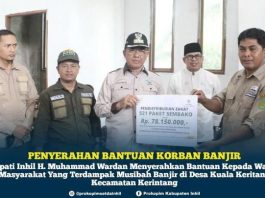 Bupati Inhil, HM Wardan Serahkan Bantuan Korban Banjir Di Kuala Krintang