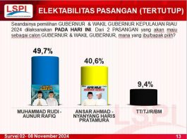 Pasangan Rudi-Rafiq Ungguli Ansar-Nyanyang, Hasil Lembaga Survey Politik Indonesia