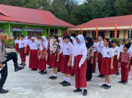 Personil Polsek Kundur Utara-Barat Latih Siswa SDN 7 Kundur Barat Baris...