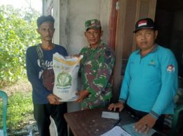 Koramil 10/Plg Dampingi Penyaluran Bantuan Pangan untuk 89 KK di Pelangiran
