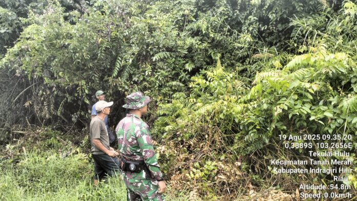 Indragiri Hilir – Cuaca panas yang melanda sebagian wilayah Riau membuat kewaspadaan terhadap kebakaran hutan dan lahan (karhutla) terus ditingkatkan. Pada Selasa (19/8/2025), Babinsa Desa Tekulai Hulu, yang tergabung dalam Koramil 02/Tanah Merah, melaksanakan patroli terpadu di wilayah Desa Tekulai Hulu, Kecamatan Tanah Merah, Kabupaten Indragiri Hilir (Inhil).