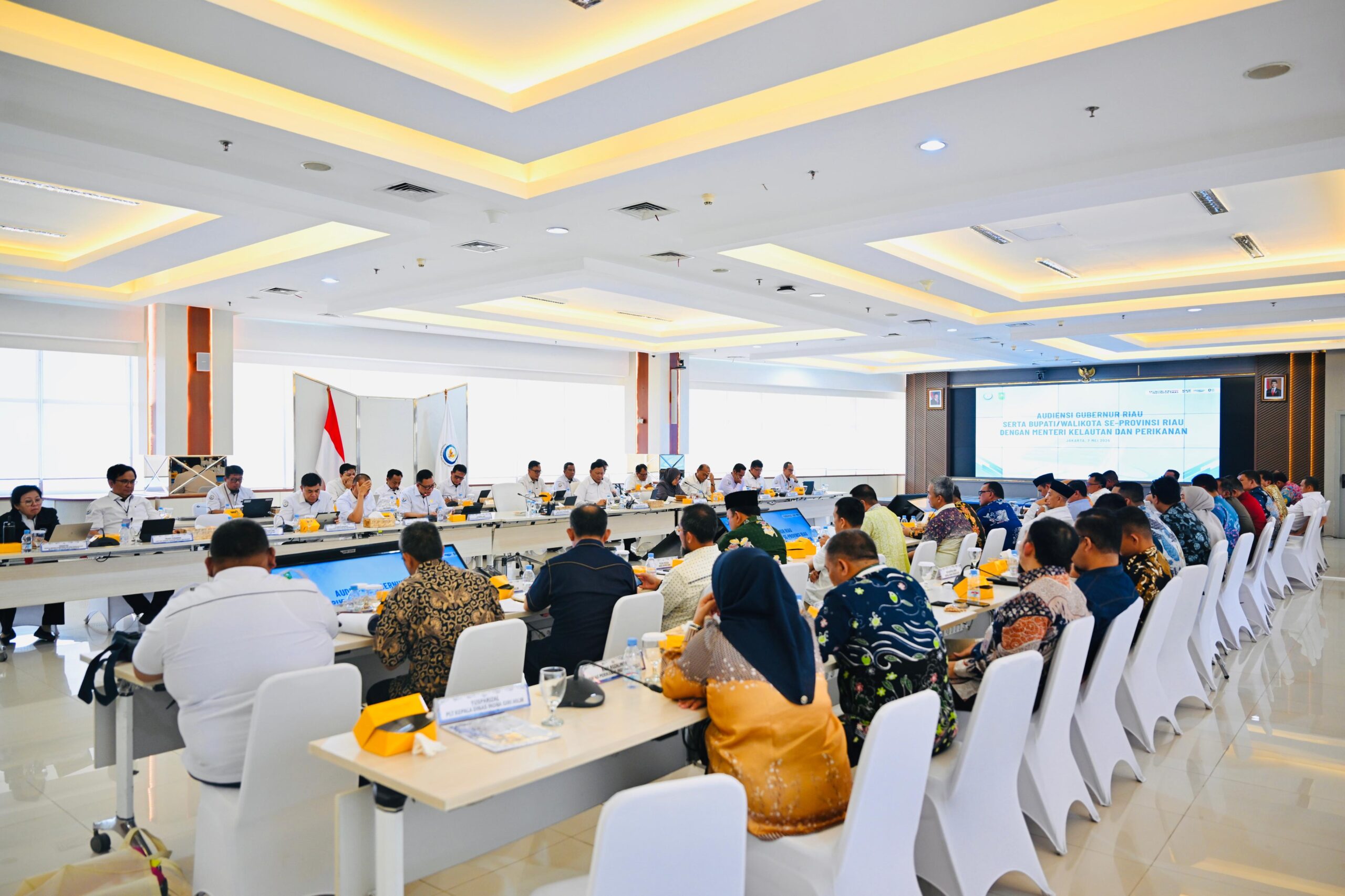 Jakarta — Melanjutkan ke Kementerian Kelautan dan Perikanan ( KKP ) RI,dengan dipimpin Gubernur Riau Bupati Inhil H.Herman SE.MT bersama Rombongan Bupati/walikota se Riau bertemu Wakil Menteri Kelautan dan Perikanan ( KKP ) RI Dr.Didit Herdiawan Ashaf, pada Aula Kantor Kementerian Kelautan dan Perikanan RI. Rabu ( 07/05/2025 ).