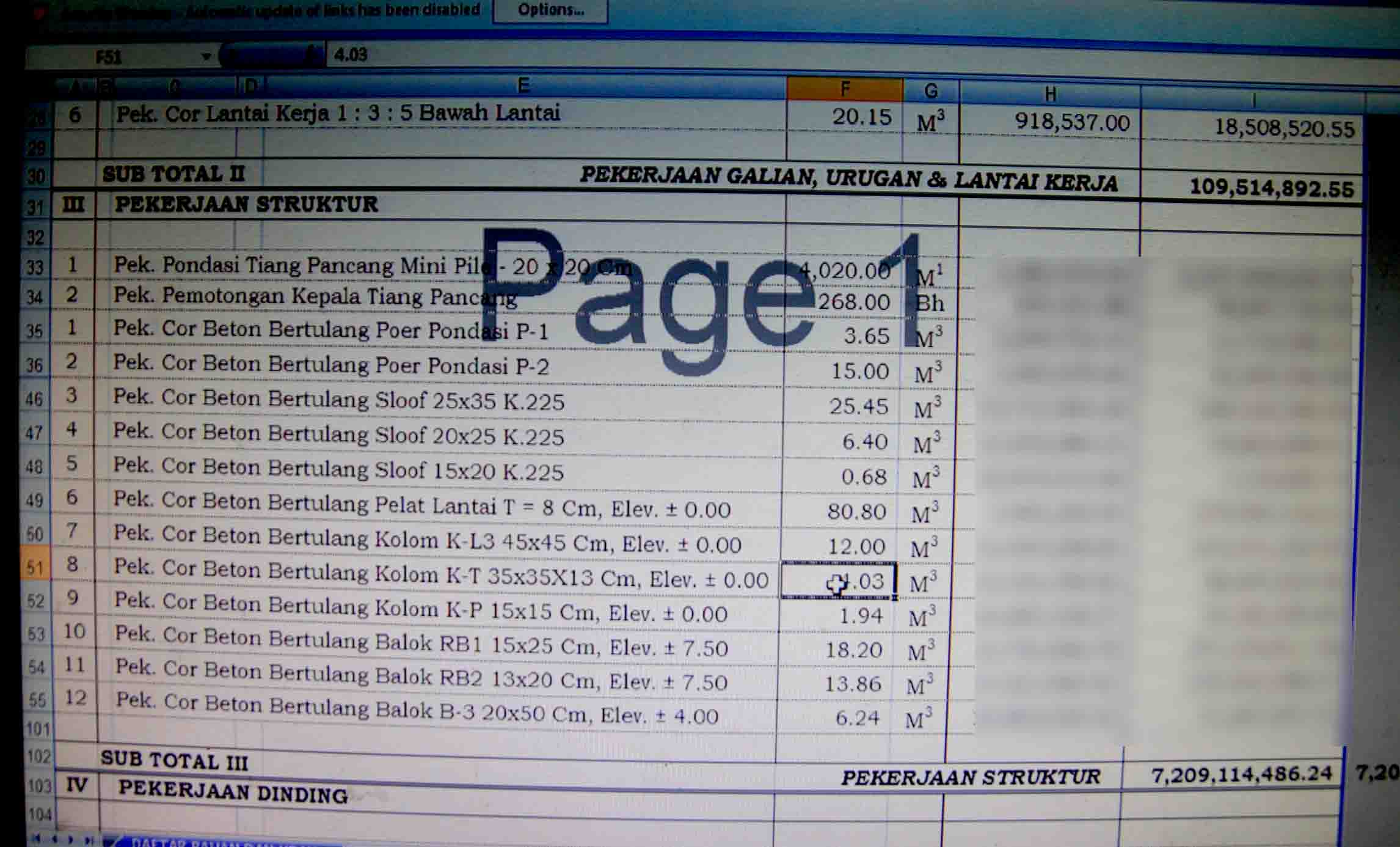 Sebanyak 1.005 titik, dengan kedalaman 4Meter. diduga pemasangan pailing disini sangat tidak mencukupi angka 1000. Dan kedalaman tidak mencapai 4Meter. Kemudian penggunaan baja pondasi dan slop, Menggunakan baja atau besi mayoritas ukuran hanya 12 MM. Kemudian bahan campuran cor untuk lantai, menggunakan batu 3/4 yang banyak malah menggunakan batu yang diambil dari produksi masyarakat, atau dengan kata lain, pihak perusahaan lebih banyak menggunakan batu yang diambil dari masyarakat ketimbang batu yang diambil dari proses mesin. Karena batu yang diambil dari masyarakat harganya jauh lebih miring.