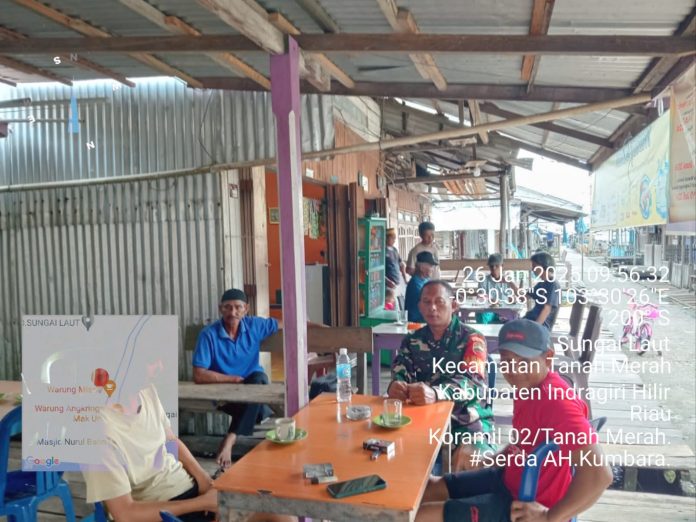 Tanah Merah, – Dalam rangka mempererat hubungan silaturahmi dan meningkatkan komunikasi dengan warga, Babinsa Sungai Laut Koramil 02/Tanah Merah, Serda AH. Kumbara melaksanakan kegiatan Komunikasi Sosial (Komsos) bersama masyarakat di Desa Sungai Laut, Kecamatan Tanah Merah, Kabupaten Indragiri Hilir (Inhil). Ahad (26/01/2025).