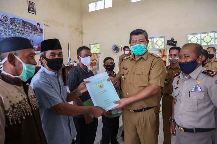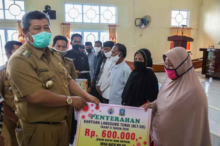 Kunjungan kerja Bupati dalam rangka, sosial new normal dan disejalankan penyerahan BLT Dana Desa Batubelah Tahap II.