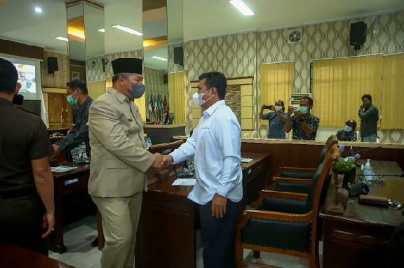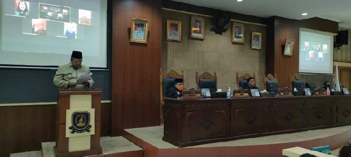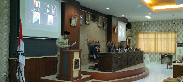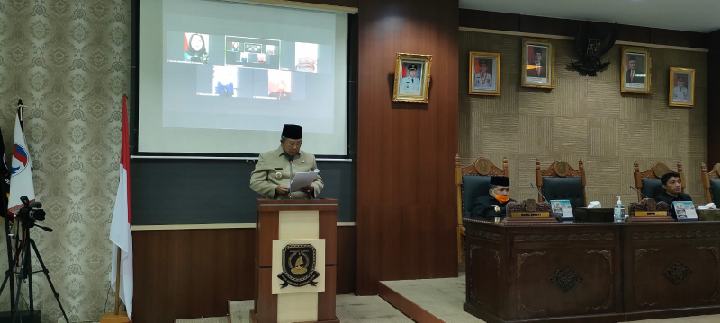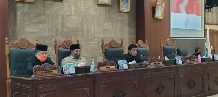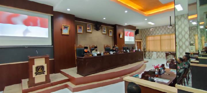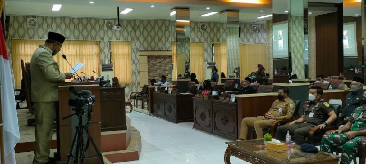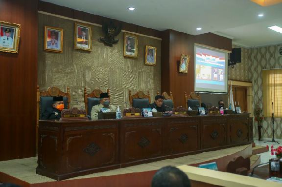 Anambas – Bupati Kepulauan Anambas, Abdul Haris, ikuti rapat paripurna yang digelar Dewan Perwakilan Rakyat Daerah (DPRD) Kabupaten Kepulauan Anambas tentang Penyampaian LKPJ Bupati KKA Tahun Anggaran 2021, di ruang rapat Paripurna DPRD KKA, Senin (04/04/2022).