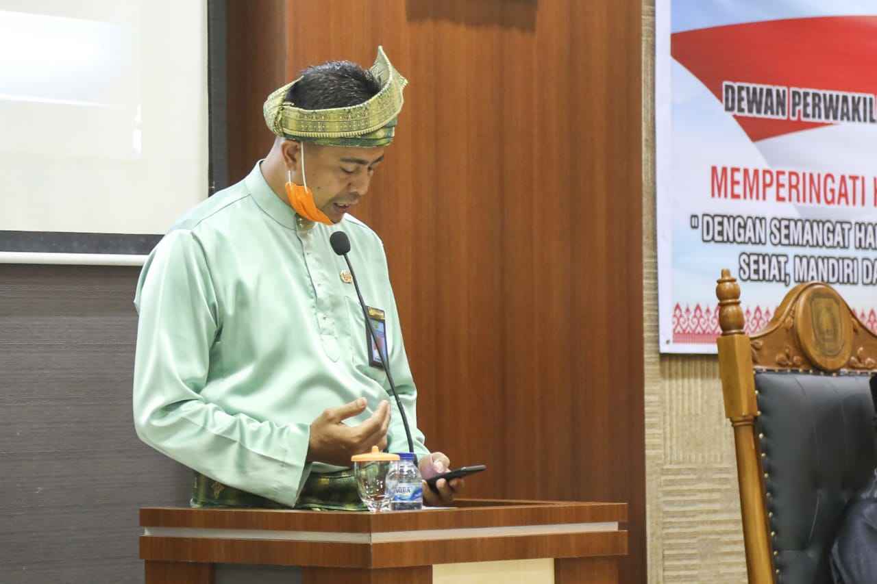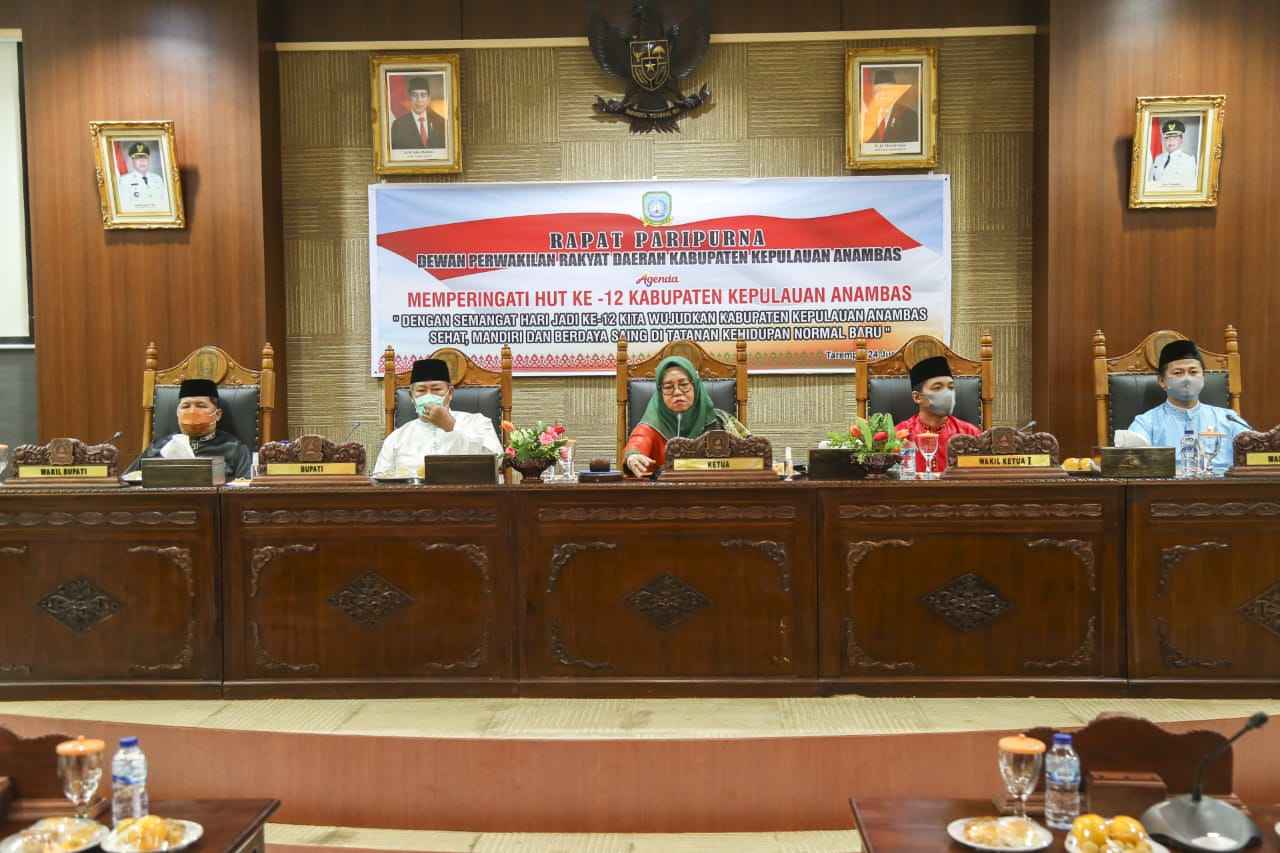 Sambutan Bupati Kepulauan Anambas, Abdul Haris, dalam pidatonya menyampaikan selamat usia Kabupaten Kepulauan Anambas yang ke12. Secara bersama-sama memperingati Hari Jadi dalam kondisi ditengah pandemi Covid-19. Pandemi Covid-19 ini yang memaksa dan menguji kepatuhan kita terhadap kebijakan yang telah ditetapkan baik Kebijakan Pemerintah Pusat maupun Kebijakan Pemerintah Daerah,” ucap Haris.
