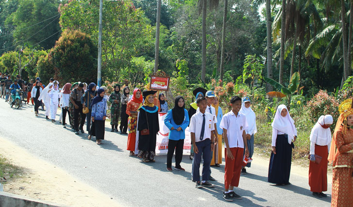 Para peserta pawai terdiri dari para pelajar sekolah menengah dan umum, mengitari jalan utama Tanjungbatu mulai dari Stadion Mini hingga POS TNI AL Tanjungbatu.