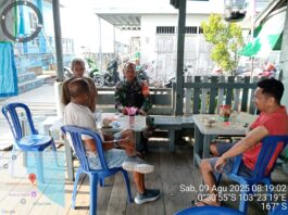 Ngopi Bareng Warga, Babinsa Sungai Laut Ajak Jaga Keamanan Lingkungan