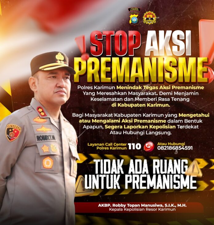 AKBP Robby Topan Manusiwa menjelaskan, Polres Karimun mengedepankan langkah preventif dan preemtif, dalam menangani kasus-kasus premanisme.