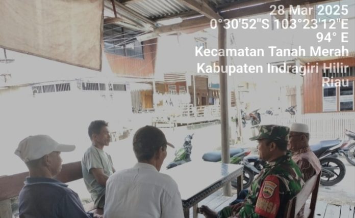 Tanah Merah – Piket Koramil 02/TM mengadakan kegiatan Komunikasi Sosial (Komsos) di Kampung Pancasila, Kelurahan Kuala Enok, Kecamatan Tanah Merah, Kabupaten Indragiri Hilir (Inhil) pada hari Jumat (28/3/2025). Dalam kegiatan ini, anggota Koramil 02/TM mengimbau kepada masyarakat untuk senantiasa menjaga hubungan silaturahmi yang baik dengan aparat desa, khususnya anggota Koramil setempat.