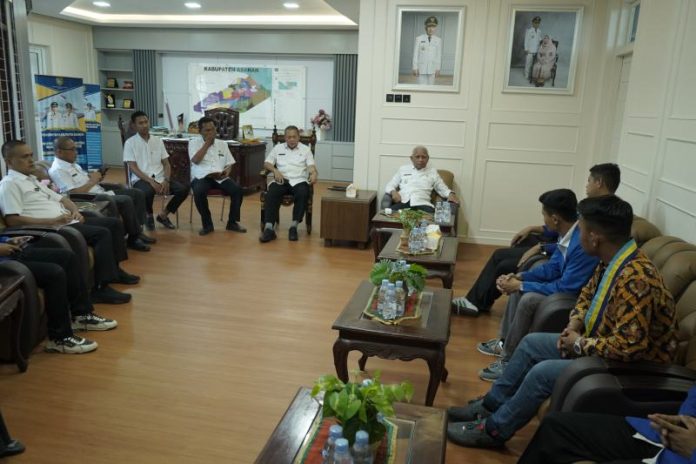 ASAHAN – Pimpinan Cabang (PC) Pergerakan Mahasiswa Islam Indonesia (PMII) Asahan melakukan audiensi dengan Bupati Asahan H. Surya, BSc di Ruang Kerja Rumah Dinas Bupati Asahan, Rabu (20/12/2023). Dalam audiensi ini tampak hadir Kadis Kominfo Kabupaten Asahan, Kadis Pendidikan Kabupaten Asahan, Kabag Protokol Setdakab Asahan dan Ketua PC PMII Asahan beserta pengurus.