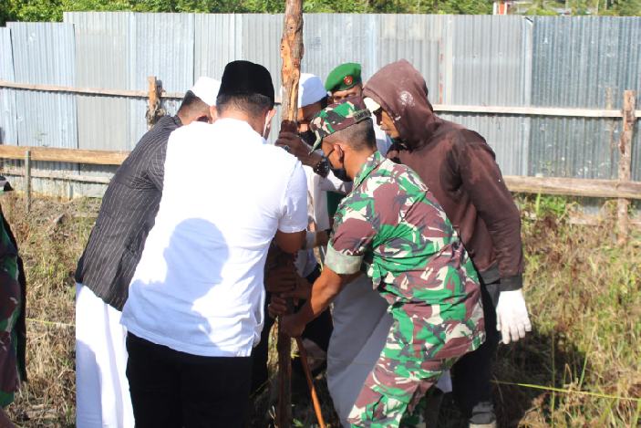 Inhil – Dandim 0314/Inhil Letkol Arh M. Nahruddin Roshid. SE. M. Tr (Han) menghadiri acara peletakan batu pertama pembangunan Ponpes Al-Masyad dan rumah Tahfiz Daarul Qur’an, di Jalan Pekan Arba’ Gg Pekan Raya, Kelurahan Pekan Arba’ Tembilahan, Kabupaten Inhil, pada Jum’at (27 Mei 2022) pukul 08.20 Wib, pagi.