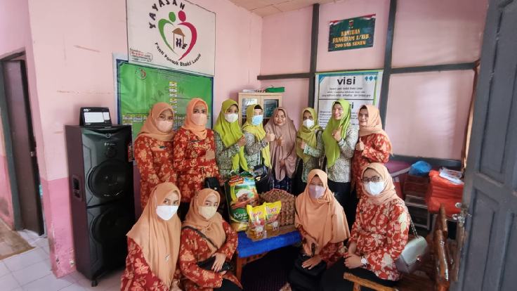 Inhil – Persatuan Istri Pemasyarakatan (PIPAS) Kelas IIA Tembilahan berbagi sembako ke Yayasan Pusaka Pondok Bhakti Lansia di Gedung Balai Latihan Kerja Industri (BLKI) Jalan SKB Tembilahan, Rabu (27/4/22).