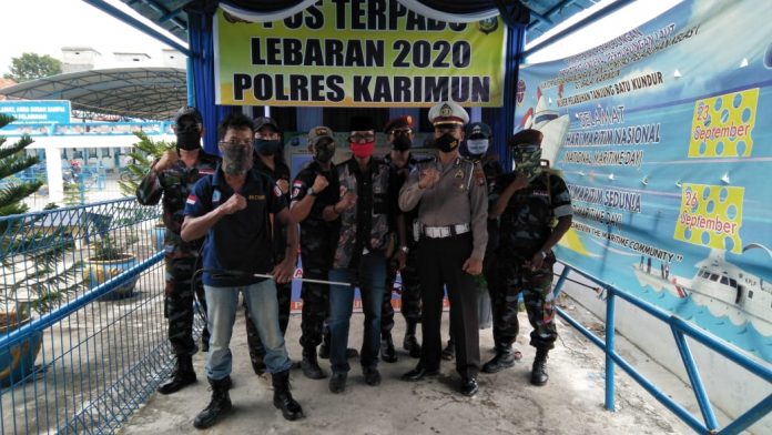 Puluhan orang yang tergabung dalam ormas Patron dalam melakukan penyemprotan. Pihaknya juga melibatkan sejumlah personil dari Polsek Kundur dan pihak Syahbandar Tanjungbatu.