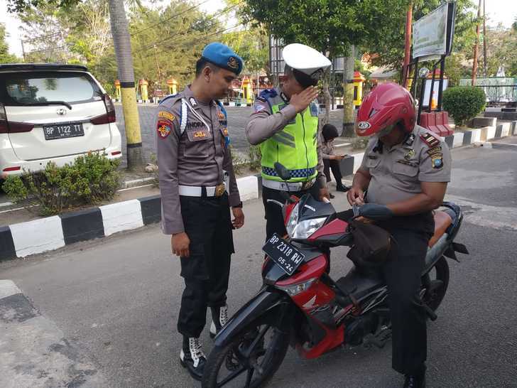 Satuan Lalu Lintas bersama Seksi Propam melaksanakan razia / penertiban kelengkapan kendaraan dan pengendara terhadap Personel Polres Tanjungpinang bertempat di Mako Polres Tanjungpinang Jalan A Yani, Sabtu pagi (07/09/2019).