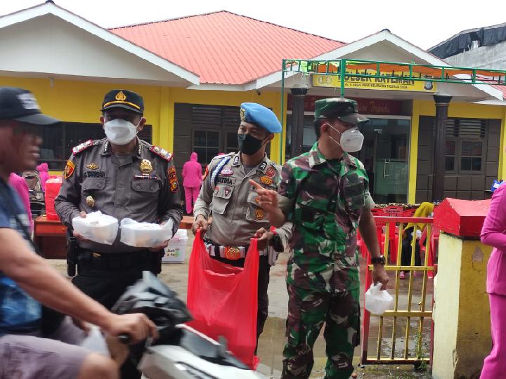 Home Featured Polsek Bersama Koramil 06/Kateman Dan Vioni Bersaudara Bagi-bagikan Takjil Gratis