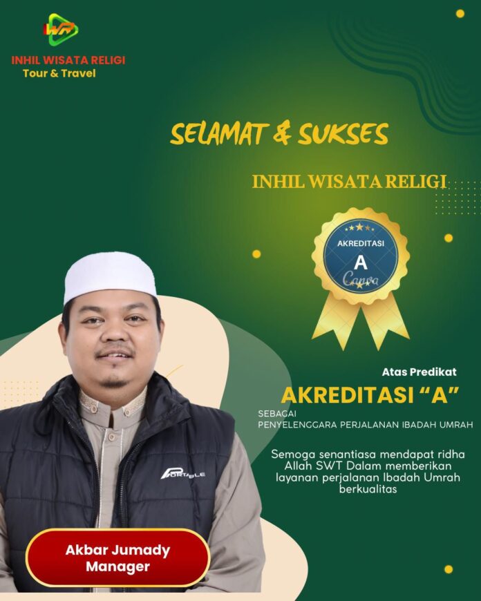Perusahaan tour and travel yang akrab disebut “Travel Umrahnya Orang Inhil” ini akhirnya meraih akreditasi A dari Lembaga Sertifikasi Bhakti Mandiri Wisata Indonesia (LS BMWI). Hasil tersebut diumumkan pada Senin, 22 September 2025, setelah melewati rangkaian proses penilaian.