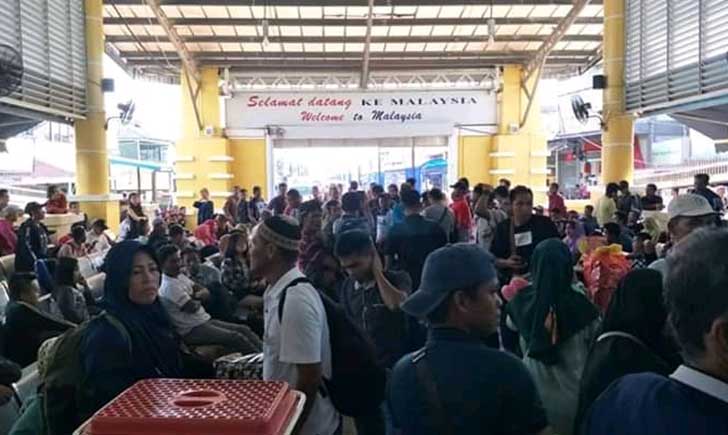 Malaysia – Ratusan Warga Negara Indonesia asal Kabupaten Karimun, terjebak selama dua hari di pelabuhan Kukup International Ferry Terminal, Johor, Malaysia, Kamis, (07/02/2019).