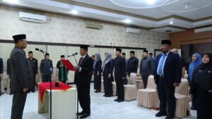 Pengambilan sumpah jabatan dan pelantikan berlangsung pada Jumat (20/6) petang di Aula Kantor Bappeda, Tembilahan, dengan turut disaksikan Plt Asisten Pemerintahan dan Kesejahteraan Rakyat Setda Inhil, Kepala BKPSDM dan pejabat terkait lainnya.