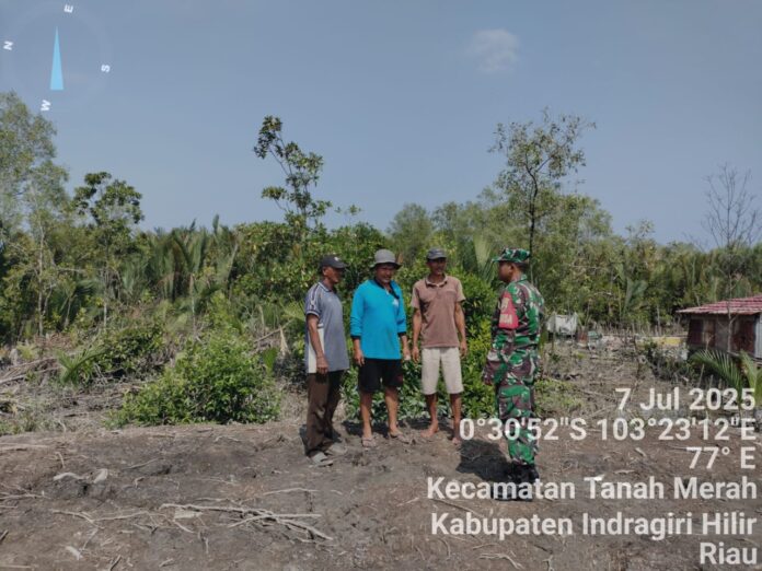 Indragiri Hilir, – Dalam upaya mendukung program pemerintah dalam pencegahan dan penanggulangan kebakaran hutan dan lahan (Karhutla), Babinsa Desa Tanah Merah, Koramil 02/Tanah Merah Kodim 0314/Inhil, Serka P. Siregar melaksanakan patroli darat di wilayah binaannya yang berlokasi di Desa Tanah Merah, Kecamatan Tanah Merah, Kabupaten Indragiri Hilir. Senin (7/7/2025).