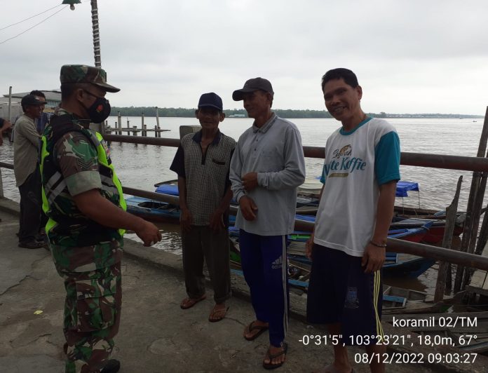 Tanah Merah – Sersan Satu (Sertu) P Siregar Anggota Koramil 02/Tanah Merah, jajaran Kodim 0314/Inhil melaksanakan kegiatan himbauan protokol kesehatan (Protkes) kepada masyarakat yang ada di kelurahan Kuala Enok, kecamatan Tanah Merah, kabupaten Indragiri Hilir, pada Kamis (8/12/2022) pagi.