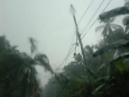 Hujan Deras Disertai Angin Kencang Menumbangkan Kelapa Dan Menimpa Kabel PLN