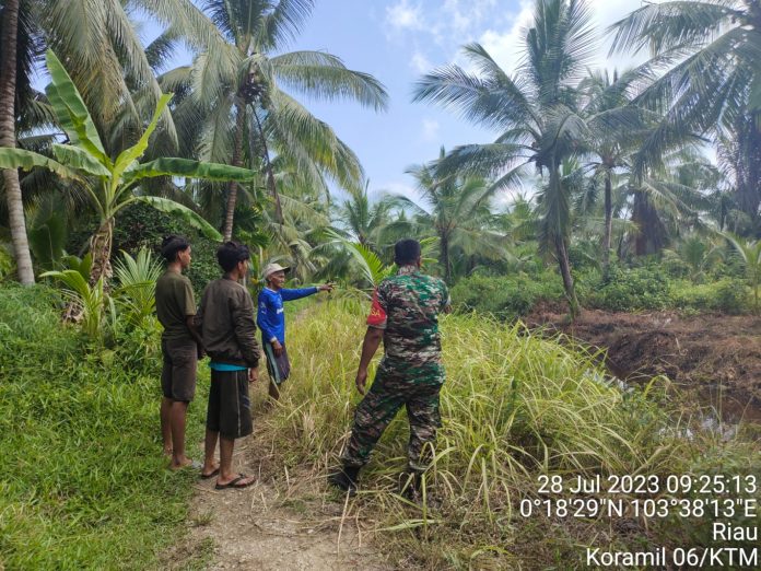 Seperti yang dilakukan Koptu Al Alim bersama dengan masyarakat melaksanakan patroli Karhutla di kelurahan Bandar Sri Gemilang Kecamatan Kateman,, Kabupaten Indragiri Hilir, Jum’at (28/07/2023) pagi.